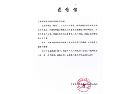 上海勞保協(xié)會感謝信