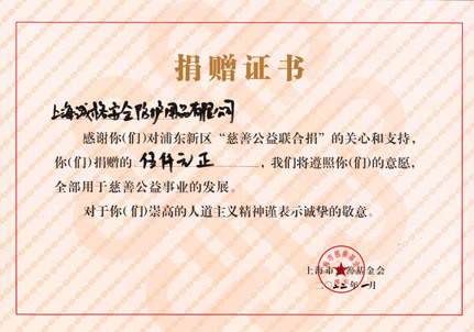 捐贈證書-上海市慈善基金會浦東